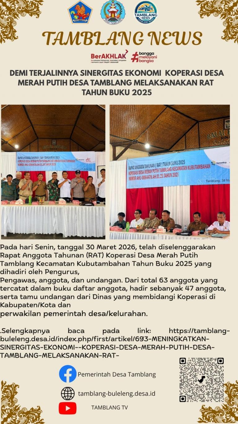 - MENINGKATKAN SINERGITAS EKONOMI KOPERASI DESA MERAH PUTIH DESA TAMBLANG MELAKSANAKAN RAT