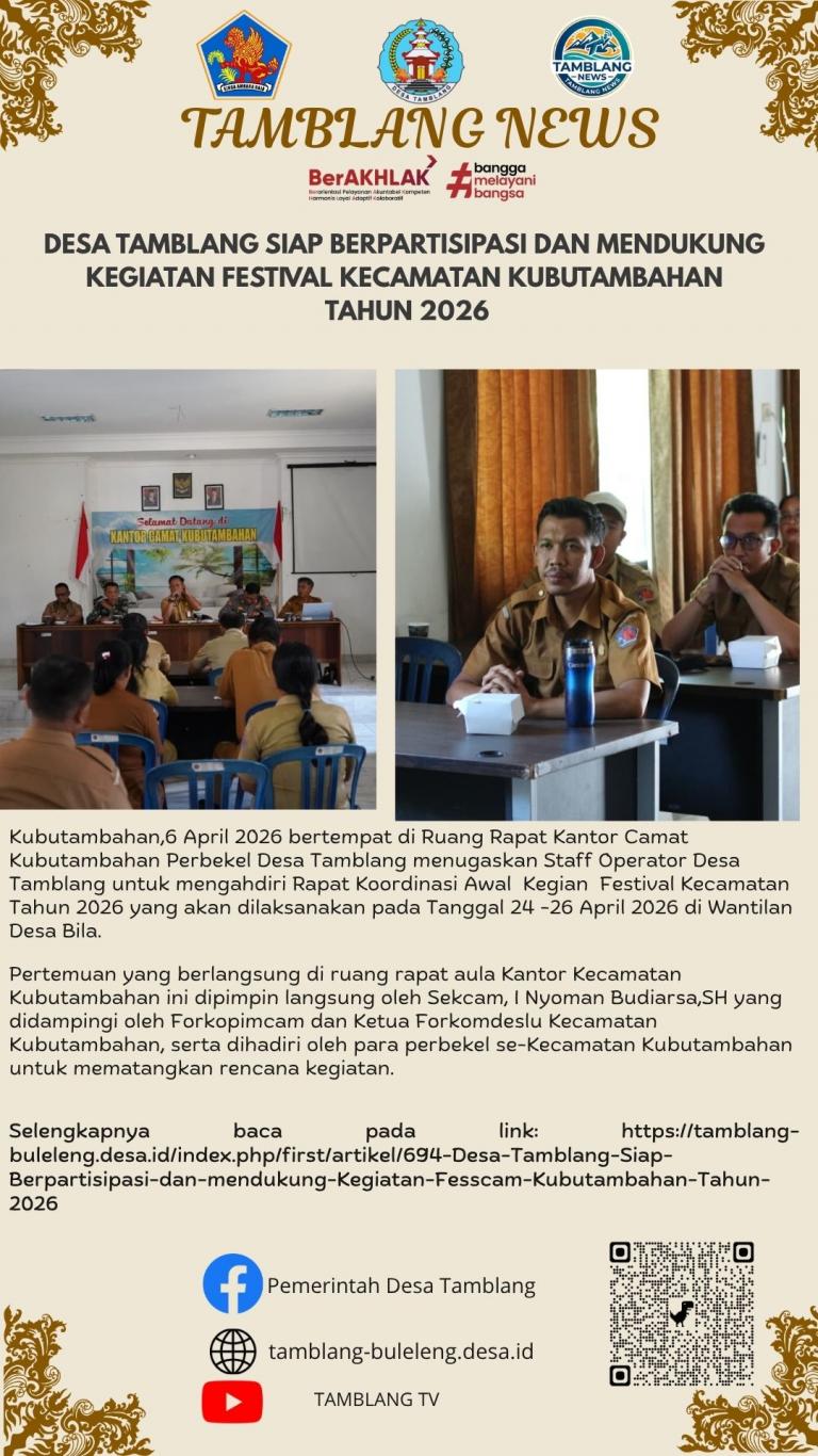 - Desa Tamblang Siap Berpartisipasi dan mendukung Kegiatan Fescam Kubutambahan Tahun 2026