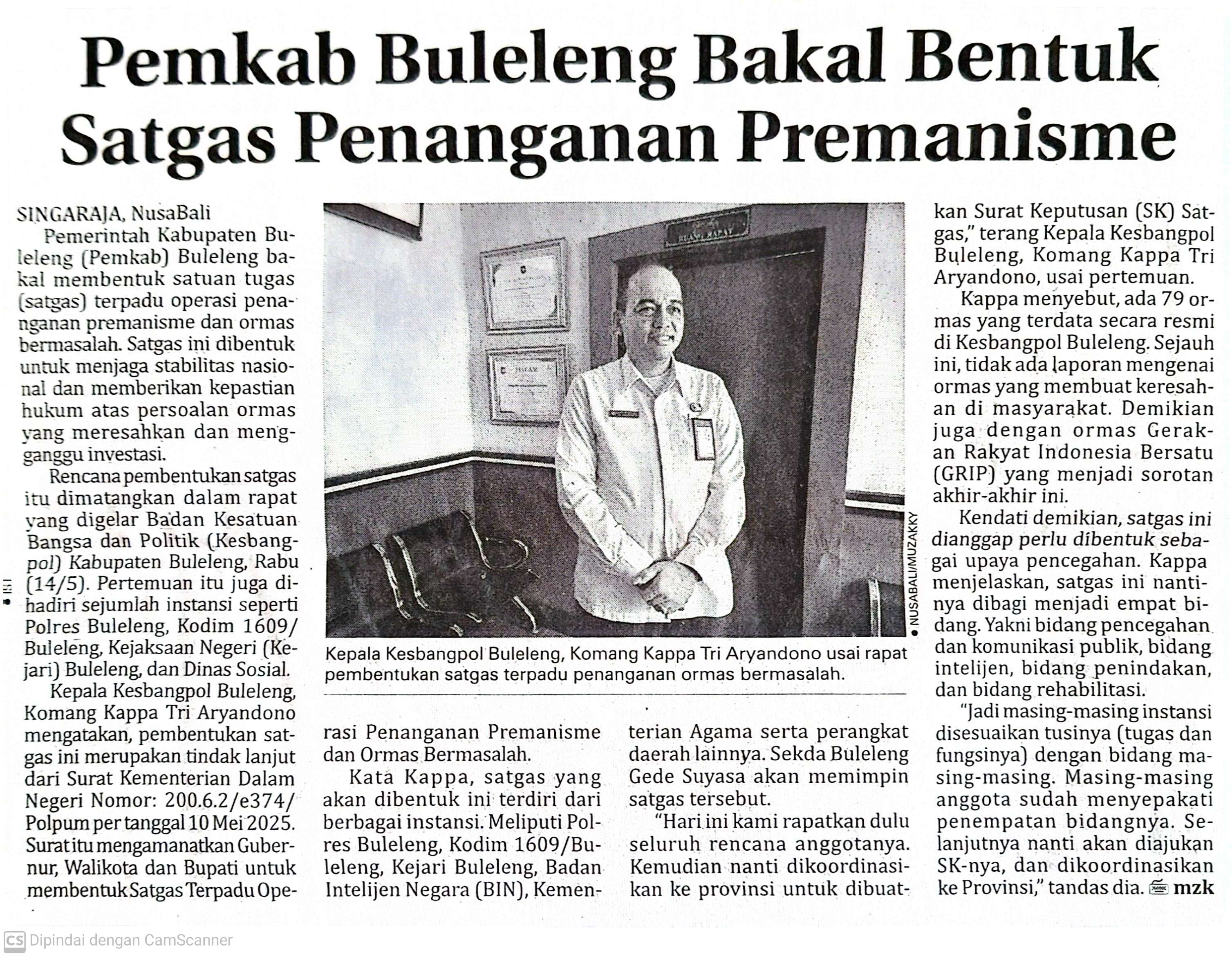 SUMBER : KORAN NUSA BALI, Jumat, 15 Mei 2025, Halaman 4, Kabar BULELENG