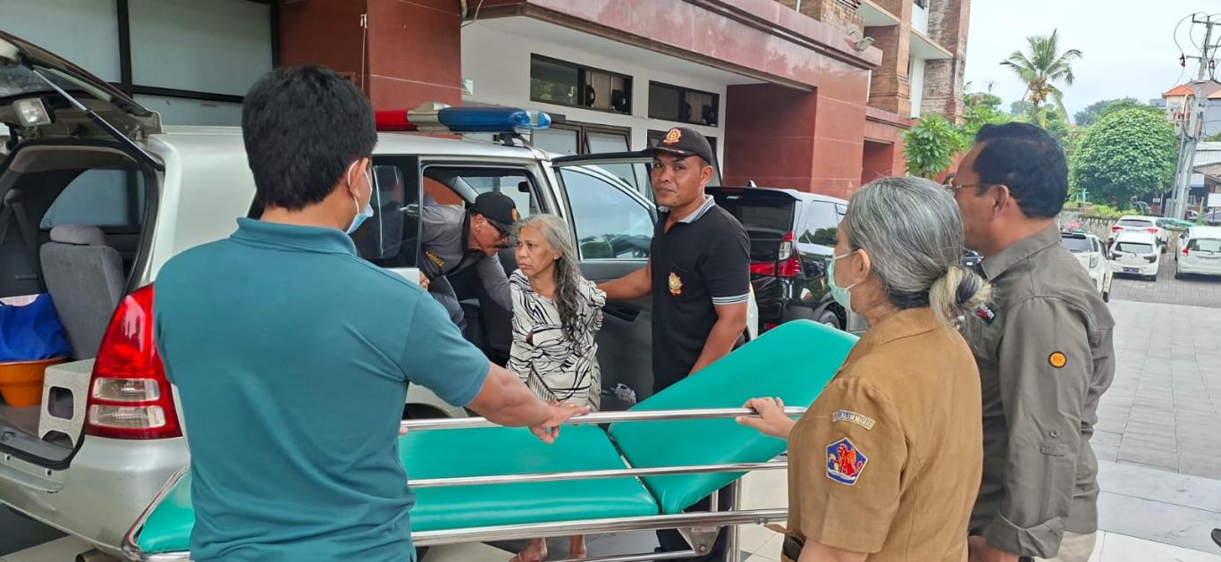 2. Mempertimbangkan kondisi ODGJ tersebut dan atas ijin keluarga, dilakukan tindakan pengamanan dgn mengikat tangan ODGJ menggunakan kain selendang dan dievakuasi langsung ke RSUD Singaraja, menggynakan Mobil Oprasional Puskesmas II, dengan pengamanan didalam mobil oleh 1 org Satlinmas, 1 staf Trantib, 1 orf pihak keluarga, 1 org staf Medis, dan 1 org Driver.