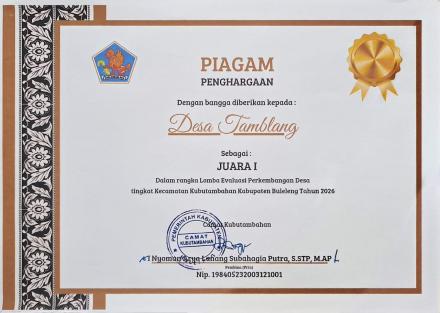 - Penghargaan kepada Desa Tamblang dalam Lomba Evaluasi Perkembangan Desa Tingkat Kec.Kubutambahan