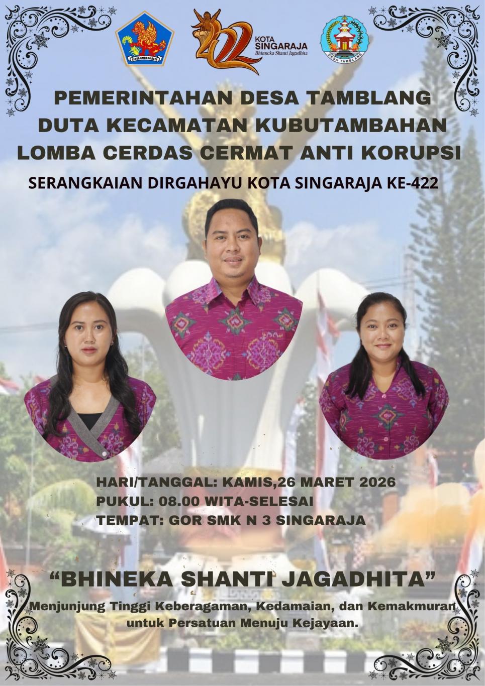 - Desa Tamblang Menjadi Duta Kecamatan Kubutambahan Dalam Ajang LCC anti Korupsi